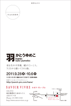明日、9月28日より開催の「羽:かとうゆめこ」展DMのPDFを掲載します。
